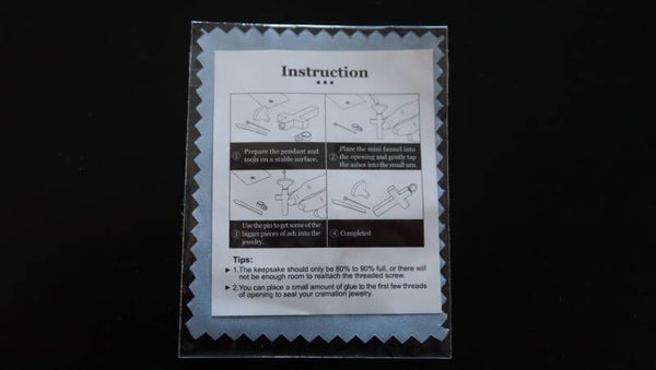 Het sieraad wordt standaard geleverd met een zacht bewaartasje +bewaar doosje, een as vulset, een poetsdoekje en een bijpassende ketting, zodat je alles direct compleet hebt om jouw dierbare herinnering te koesteren.